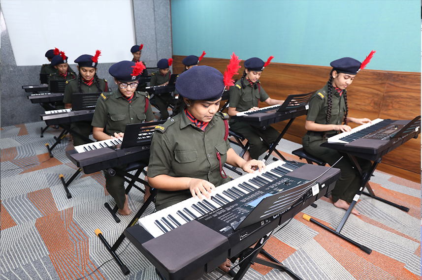 Military School band consists of woodwind instruments, brass instruments and percussion instruments. This band is used to synchronize to movement of cadets during military training and other programs